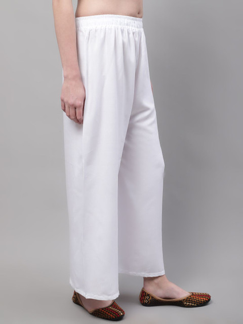 White solid palazzo, has an inner elasticated waistband with slip-on closure