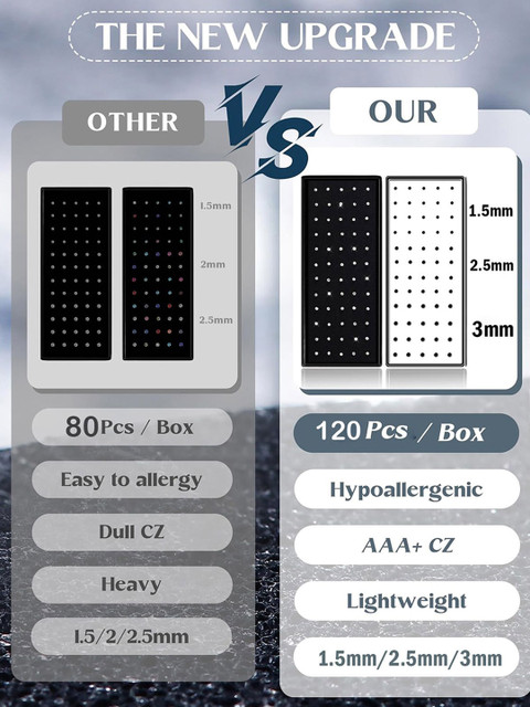 VAMA Set Of 120 Silver-Plated Stainless Steel Stud Nosepin