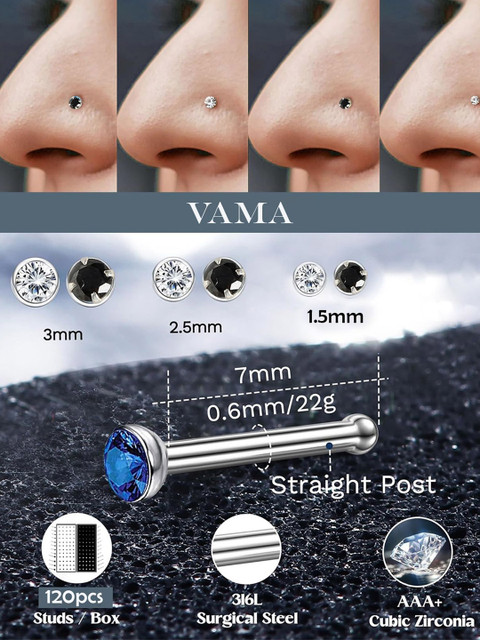 Be the first to review “VAMA Set Of 120 Silver-Plated Stainless Steel Stud Nosepin”