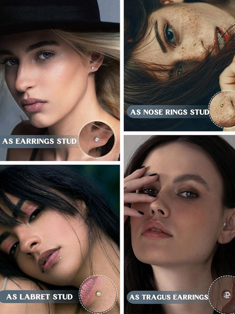 Set Of 120 Silver-plated stud Nosepin secure with insert closure.