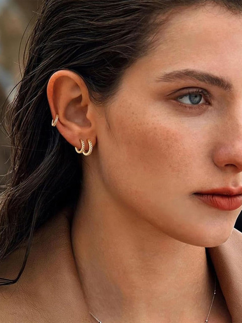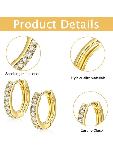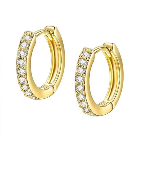 Gold-toned circular hoop earrings, gold-plated, has crystals studded details