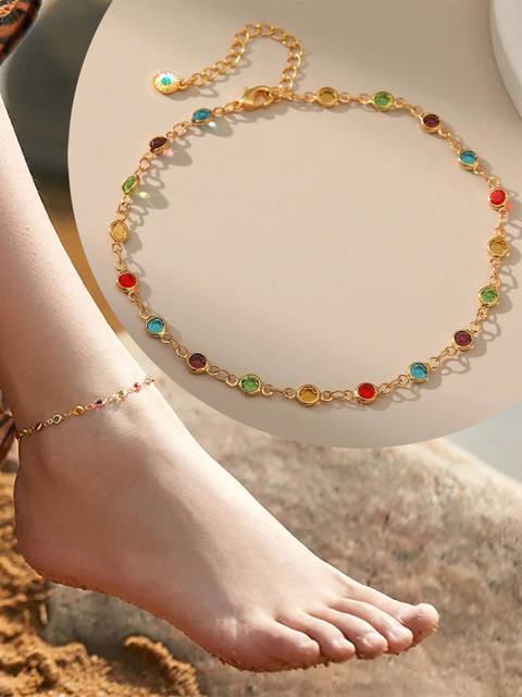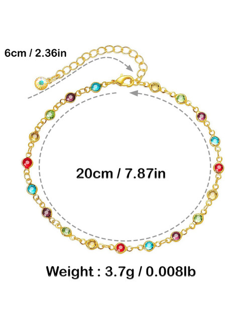 Crafted from high-quality gold plating and durable multicolor charms for lasting shine and beauty. To maintain its vibrancy, avoid exposure to water, perfumes, and harsh chemicals. Store in a cool, dry place when not in use to preserve its quality and longevity.