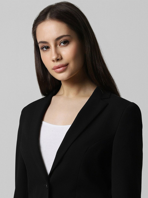 Black solid regular fit formal blazer, has a notch lapel , long sleeves, single-breasted closure, two pockets, one welt pocket and a double-vented back hem