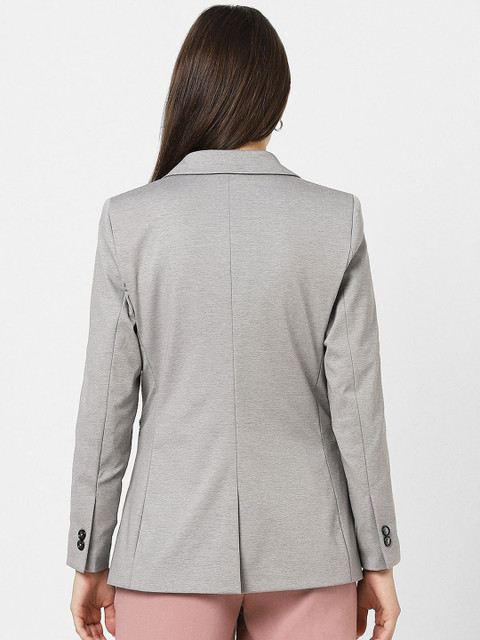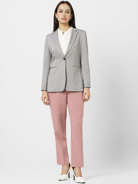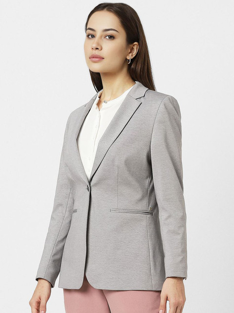 Grey solid regular-fit formal blazer, has a notched lapel, long sleeves, single-breasted with single button closure, two flap pockets and a single-vented back hem