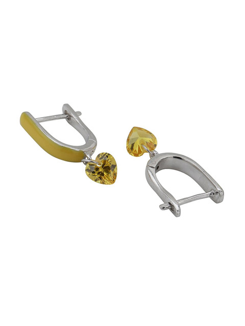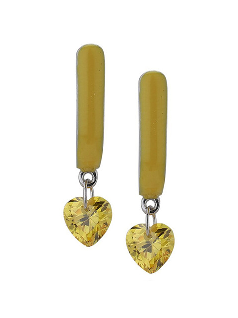 Silver-toned and yellow contemporary drop earrings, rhodium-plated, has cubic zirconia