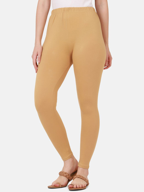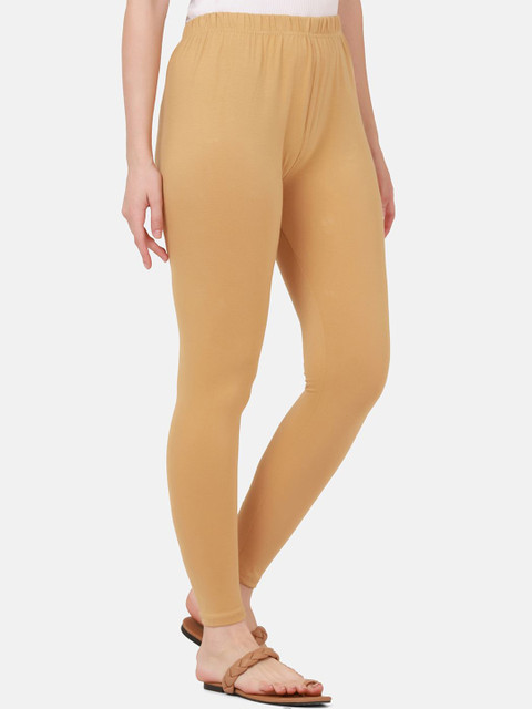 Beige solid ankle-length leggings, has an elasticated waistband with slip-on closure