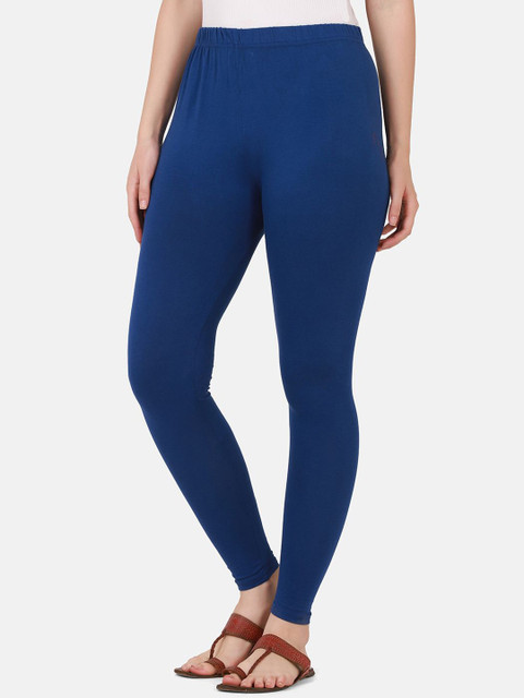 Blue solid ankle-length leggings, has an elasticated waistband with slip-on closure