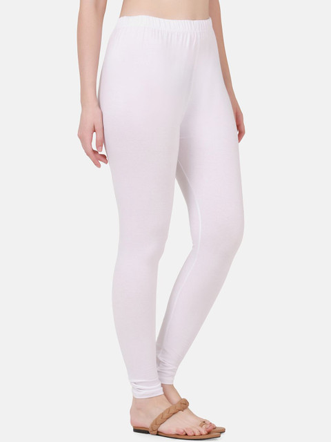 White solid churidar length leggings, has an elasticated waistband with slip-on closure