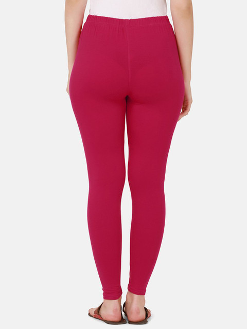 Pink solid ankle-length leggings, has an elasticated waistband with slip-on closure