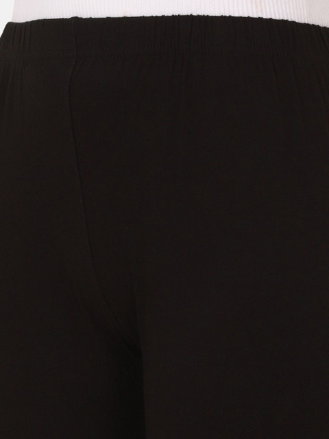 Black solid ankle-length leggings, has an elasticated waistband with slip-on closure