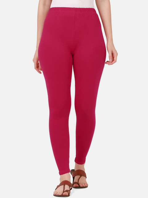 Pink solid ankle-length leggings, has an elasticated waistband with slip-on closure