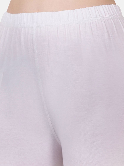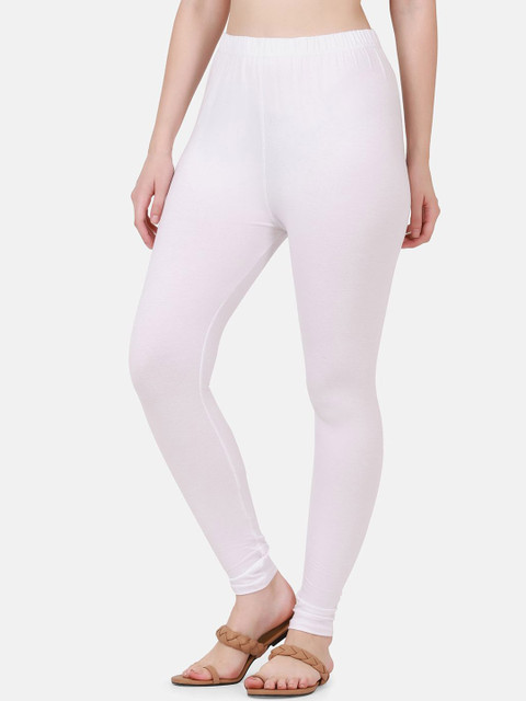 White solid ankle-length leggings, has an elasticated waistband with slip-on closure