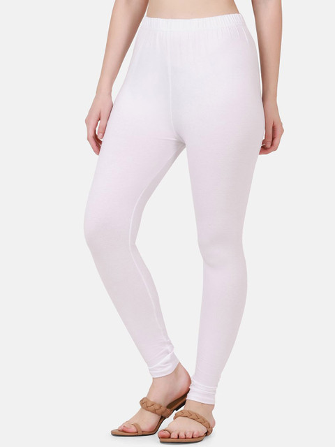 White solid ankle-length leggings, has an elasticated waistband with slip-on closure
