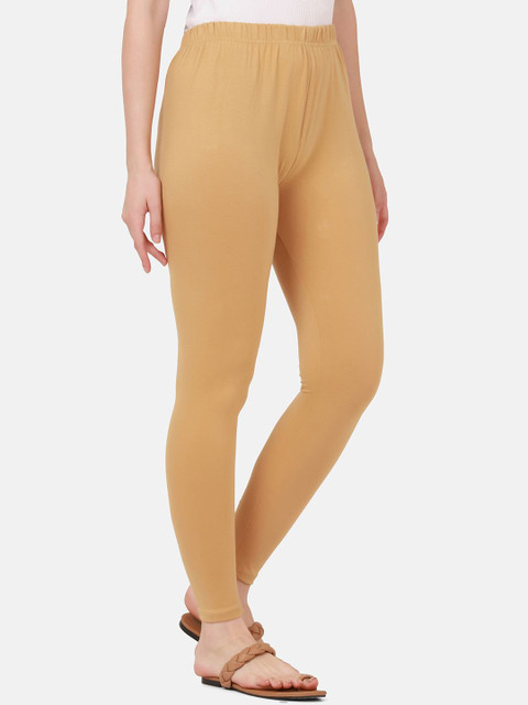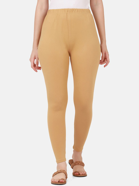Beige solid ankle-length leggings, has an elasticated waistband with slip-on closure