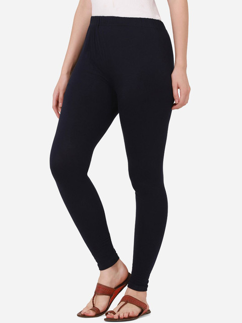 Navy blue solid ankle-length leggings, has an elasticated waistband with slip-on closure