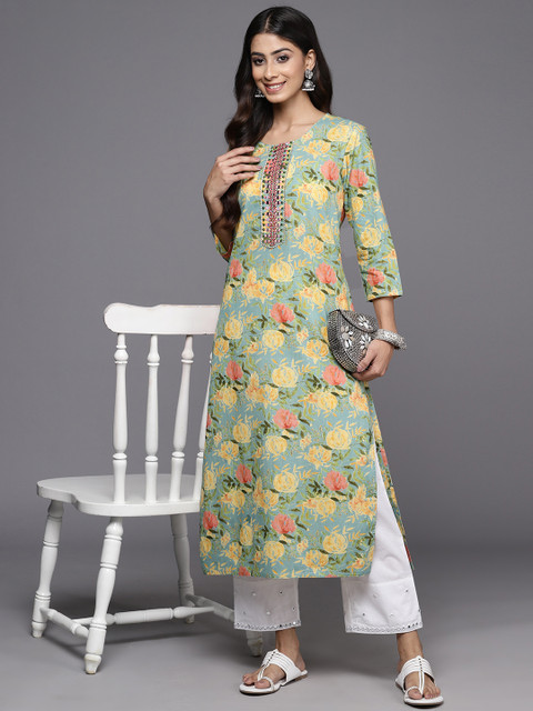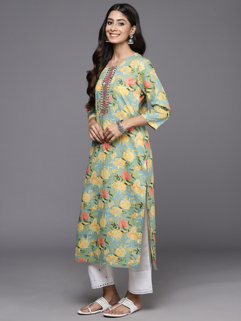 3 reviews for Varanga Floral Printed Mirror Work round neck Pure Cotton Kurta