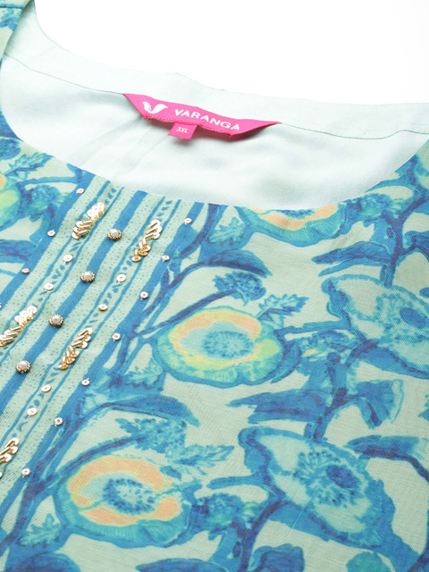 I really liked this Varanga sea-green kurta set. The color is exactly as shown in the picture and looks very elegant. The fabric feels comfortable and is good for both daily wear and small functions. The fit is true to size and the stitching is neat. The floral print gives a classy and fresh look. Overall, it’s definitely worth the price and I’m happy with the purchase.