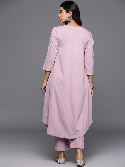 Pink solid trouser has slip-on closure