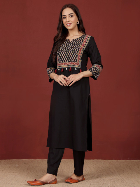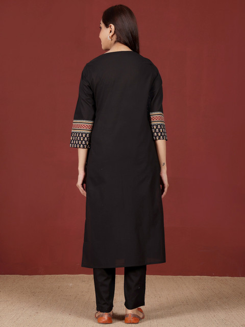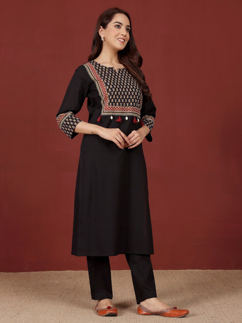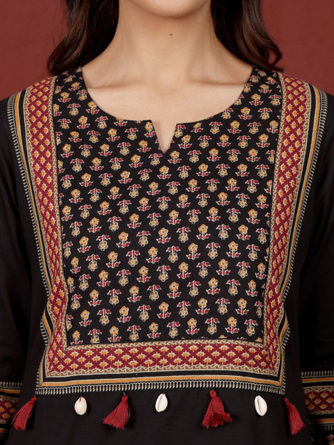 Simple yet elegant kurta hai ye. Iska material cotton hai isliye pehen ne k liye way too comfortable hai. Fabric is breathable. Office k liye best kurta hai ekdum. Even for daily wear. Black pe work hai wo jyada acha hai. Minimal hai isliye acha lag raha hai. Fitting perfect hai. Varanga never disappoints. Loved the style & pattern. Thanks Myntra & Varanga.