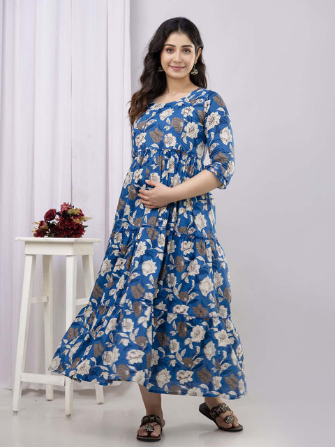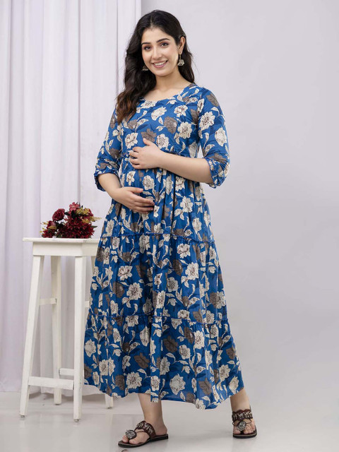 3 reviews for VARICOS Pure Cotton Printed Pregnancy Wear Maternity Maxi Dress With Nursing Zipper