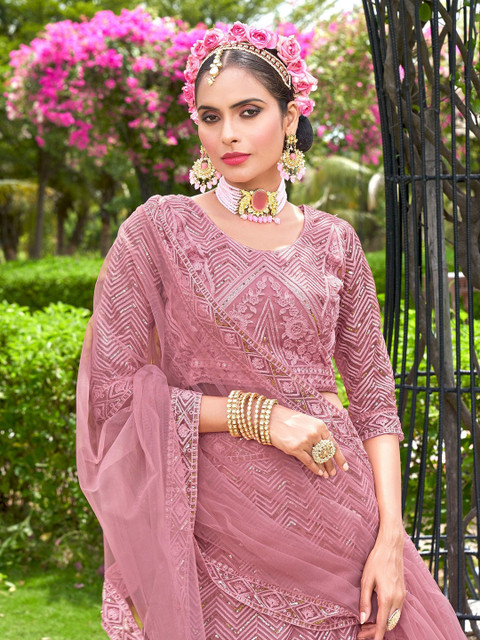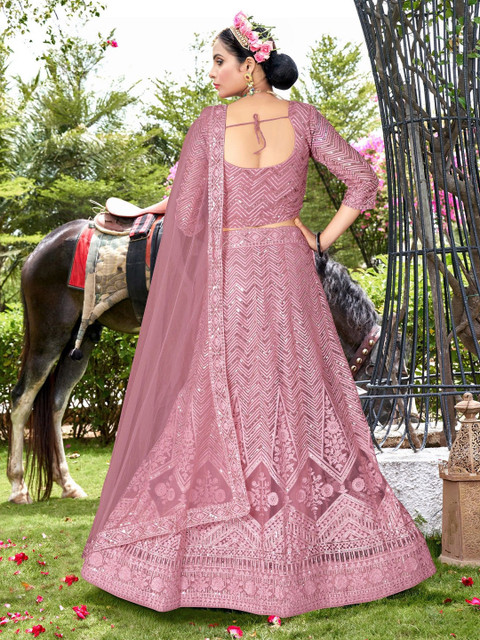 Varni Fabrics Women Net Pink Color Embroidered Lehanga Choli Set Pink Color Lehenga Choli