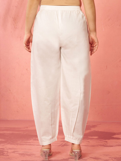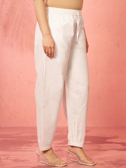 White solid high-rise salwar with gathers and pleats, has an elasticated waistband with a drawstring closure