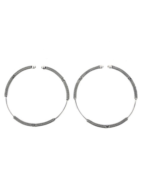 Silver-toned oxidized anklets slip-on closure