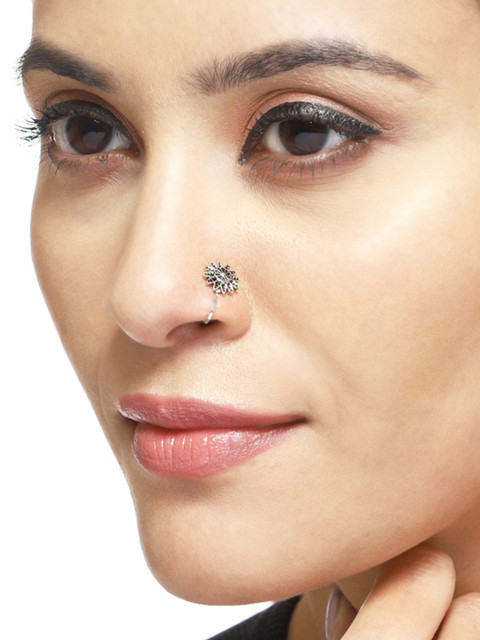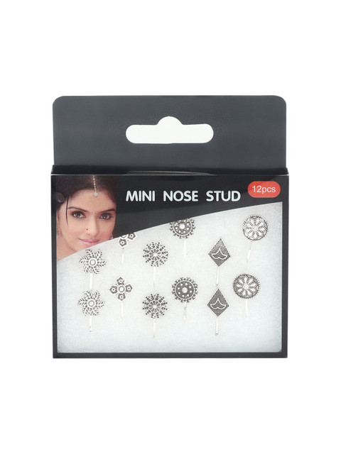 Set of 12 silver-plated stud nose pin with textured detail, Secured with insert closure