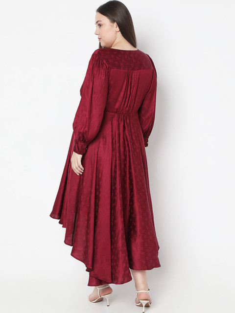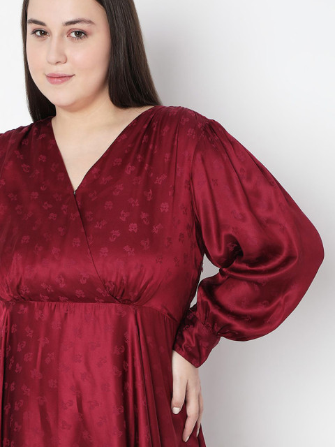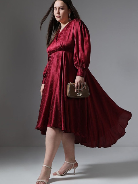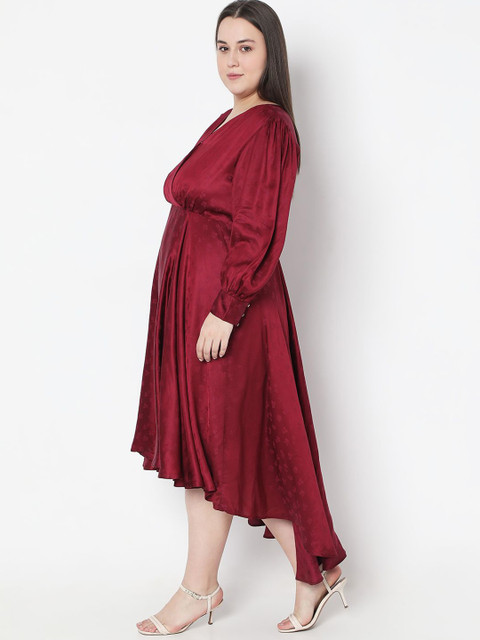 - Red solid self design fit & flare dress