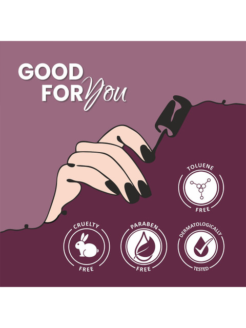 Cruelty free Paraben free Dermatologically tested Toluene free VeganNail Polish:Long lasting Quick dry Smooth application High shine gloss finish Full coverage in 1 coat Safe non yellowing formula Non chippingNail Remover Wipes:It removes even the darkest shades with ease and moisturizes your nail bed and cuticles as wellOne swipe removalTravel friendlyAcetone free nail polish remover wipesEach wipe can clean up to 10 nails