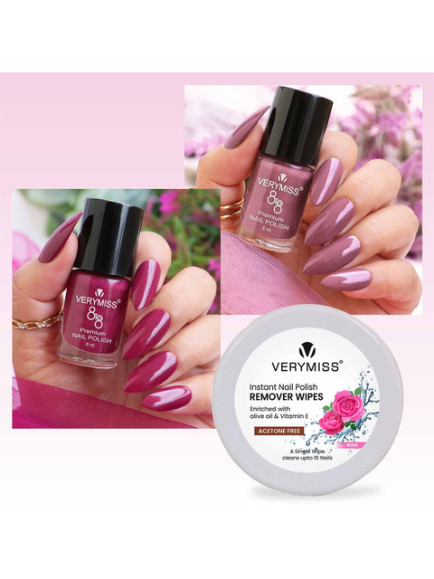 VERYMISS Set Of 3 8 To 8 Nail Polish – 6 ml Each – Shade 209-307 & Remover Wipes