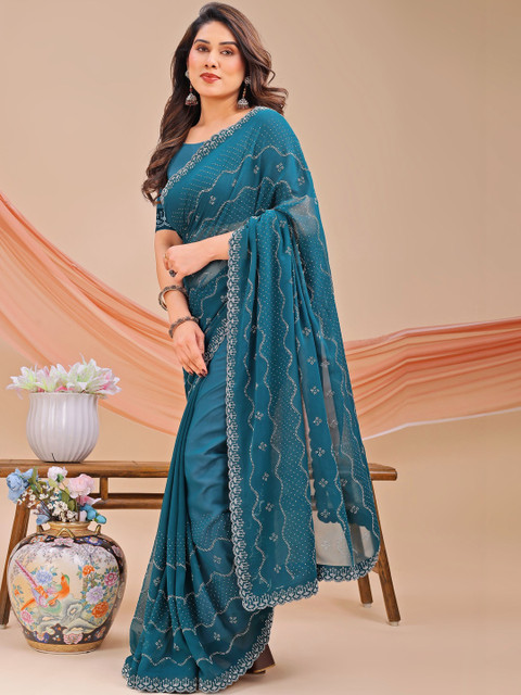 - Embellished saree with embellished border border
