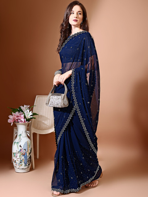 - Embellished saree with embellished border border