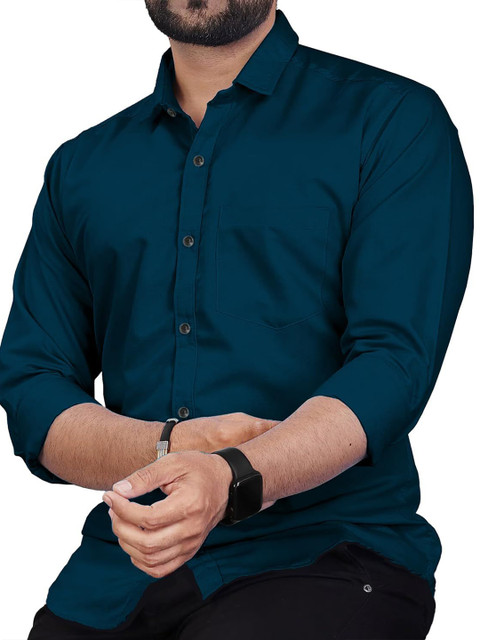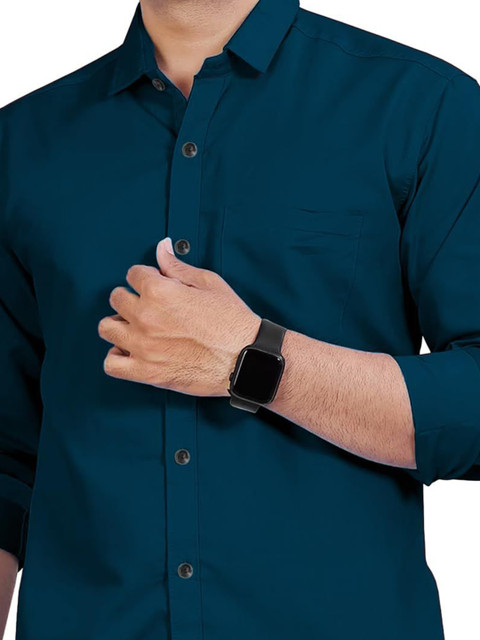 Nude-coloured solid opaque Casual shirt ,has a spread collar, button placket, 1 patch pocket, long regular sleeves, curved hem