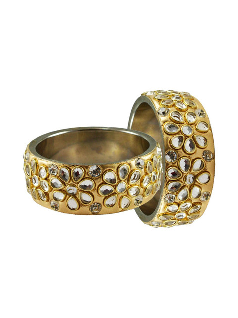 Set of 2 gold-plated bangles, has stone-studded details, each secured with slip-on closure