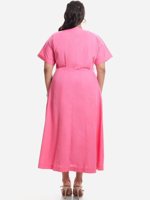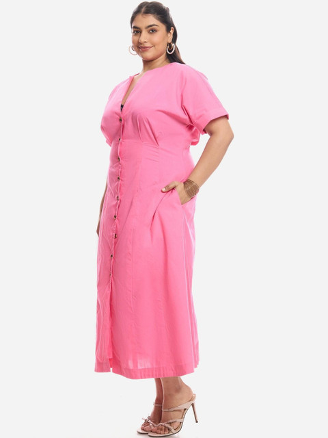 1 review for Virgio Solid Cotton V-Neck Short Sleeves Plus Size Maxi Dress