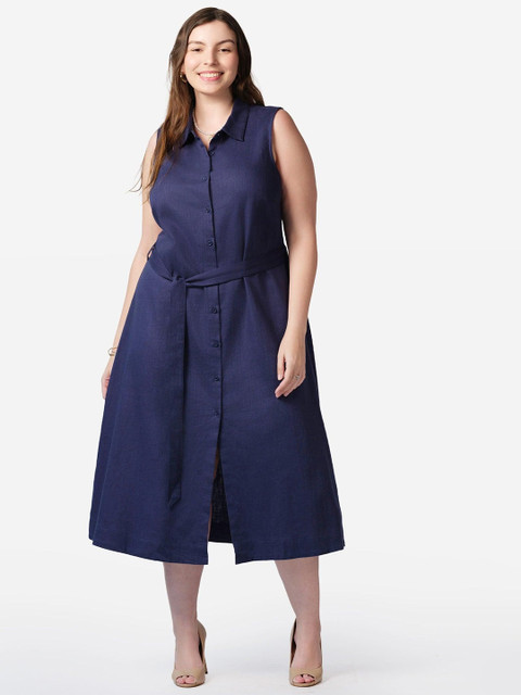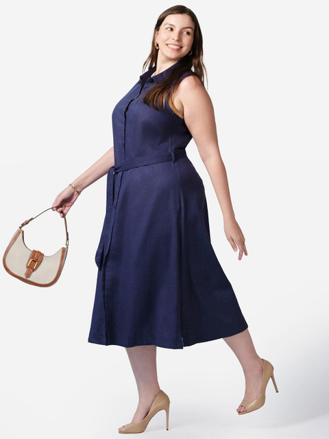 - Navy blue solid a-line dress