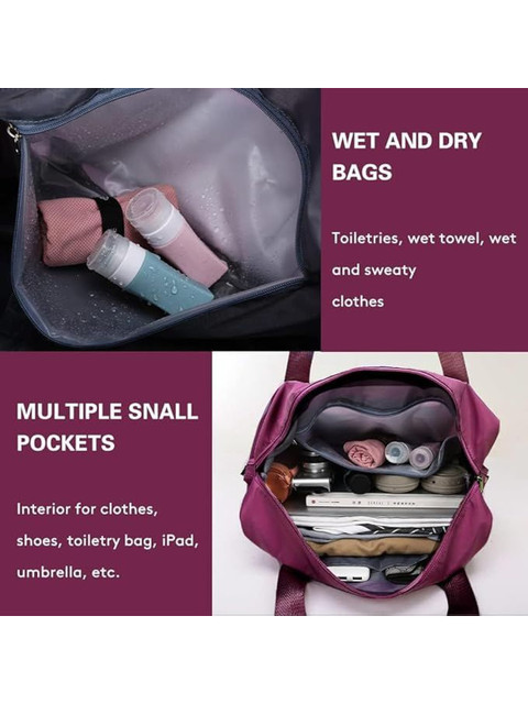 Wide Application Duffels Bag Our sport gym bag is a perfect reliable companion for both indoor and outdoor sports.It is a great shoulder bag for workout, travel, sports activity, tennis, basketball, yoga, fishing, hunting, camping, hiking and many outdoor activities. Suitable for gym sport bag, school duffle bag, travel duffel bag, travel holdall bag, gym holdall,etc.Multi-purpose Design Overnight bagHandbag or cross bag as you like,comfortable,adjustable strap.protect for your 15.6 inch laptop computer with a generously padded sleeve inside a separate zippered compartment. Multiple internal and external organizational pockets ensure you have a place for everything.Airplane Friendly Travel BagThe perfect carry-on compliant bag for airline travel. Your ideal overnight weekend boarding bag for business or personal travel.Dry Wet Separated Tote BagThe high density water resistant material can help you to separate dry items and wet items,if you have wet clothes or towel,you can put it in this crossbody bag.Dimensions(H*W*T27x55x18cm /10.63*21.65*7.09 inch,0.6kg weight (For reference only, please refer to the actual measurement).EASY TO STOREWhen the luggage is too heavy, it will be an excellent shoulder overnight bag, freeing the burden of both hands. Folding the tote bag, only the size of a book.