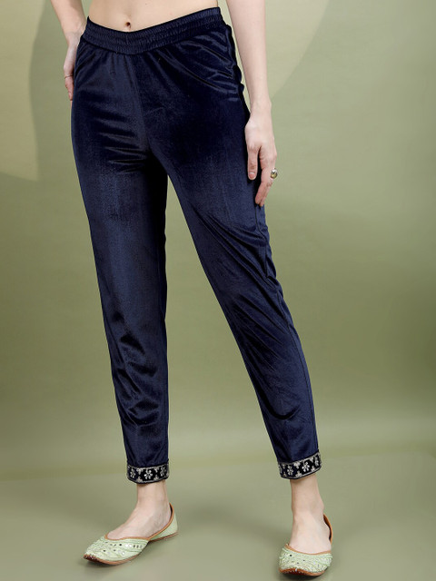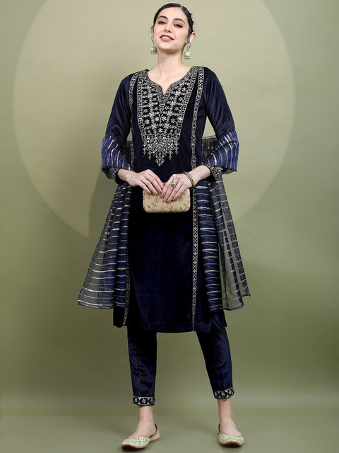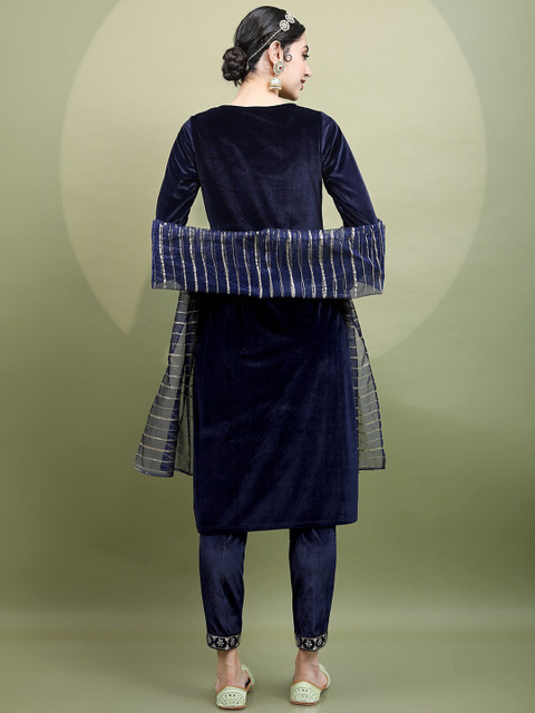 Navy blue yoke design Kurta with Trousers with dupatta