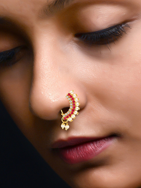 Vivastri Fashion Jewellery Gold Plated Alloy Nath Nose Pins Without Piercing For Women