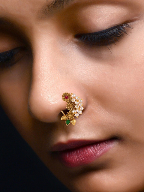 Vivastri Fashion Jewellery Gold Plated Alloy Nath Nose Pins Without Piercing For Women