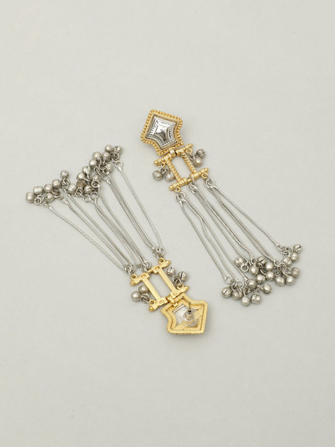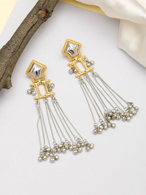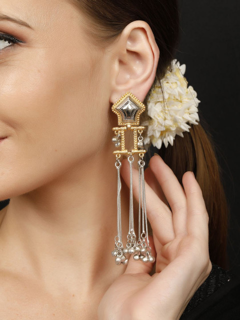Silver-toned contemporary drop earrings, silver-plated, has artificial stones and beads