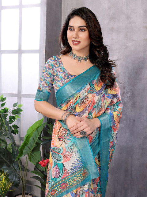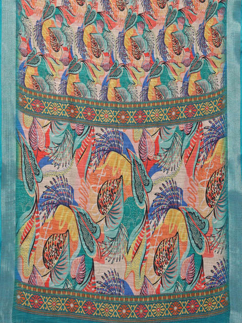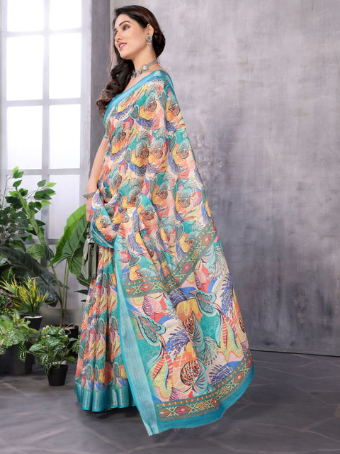 - Floral printed saree with woven design border