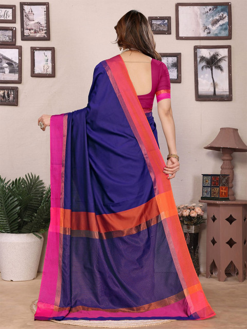 - Solid saree with zari border border