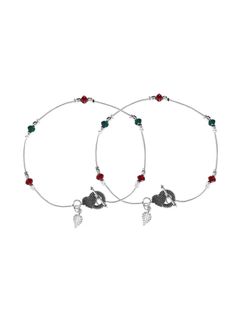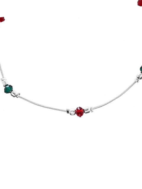 Silver-plated, green and red anklet, has artificial beaded details