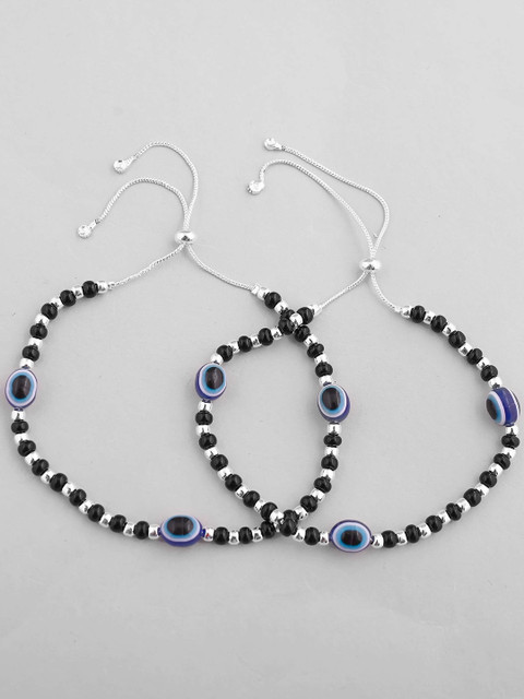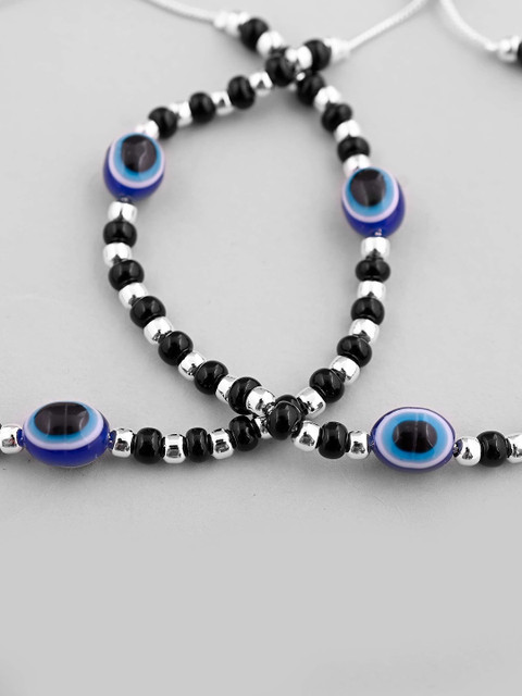 Silver-toned, blue & black artificial beads Studded anklet s-hook closure