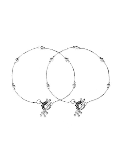 Silver-toned and white stainless steel anklets, has artificial beaded details