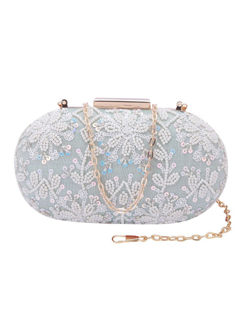 Grey and white embellished box clutches