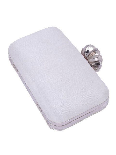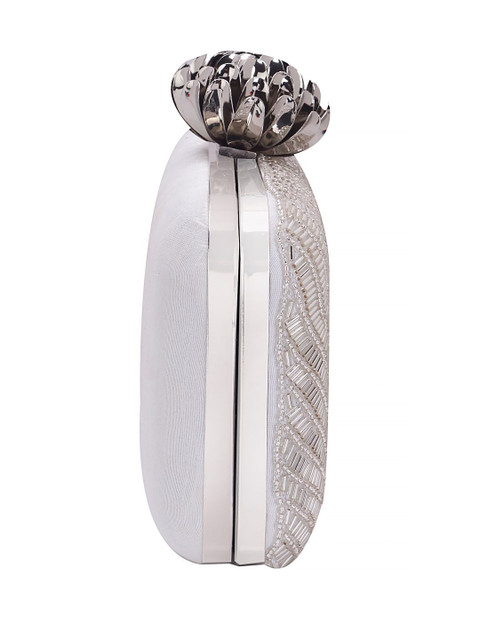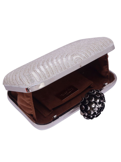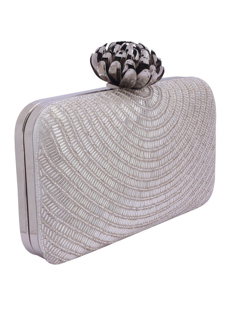 White and silver-toned embroidered box clutches