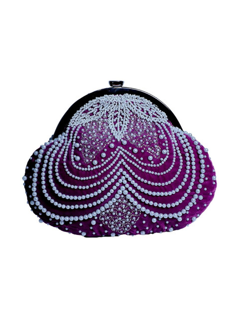 Purple and purple embroidered embellished half moon clutches